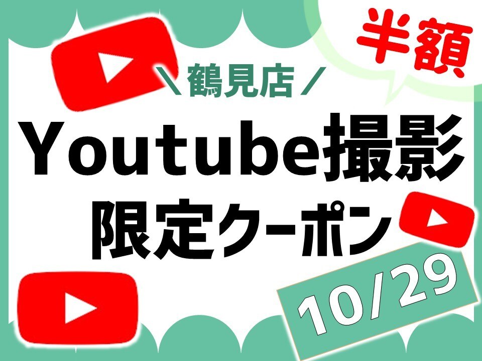 そんな10月ですが、いつものようにやらせて頂きます!「YouTube撮影協力クーポン」!